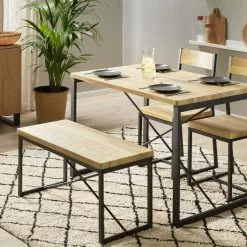 Beliani Conjunto De Comedor 4 Plazas Madera Clara/negro FLIXTON