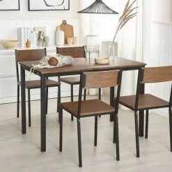 Beliani Conjunto De Comedor 4 Plazas Madera Oscura/negro BURTON