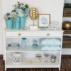 La consola presentada ofrece mucho espacio para tus fotos, jarrones y otros elementos decorativos. Dos cajones espaciosos son un lugar perfecto para guardar artículos pequeños. Funcionará bien en interiores decorados en diferentes estilos.