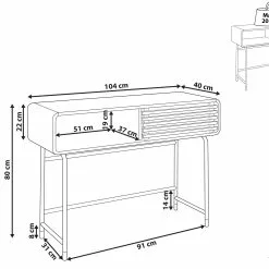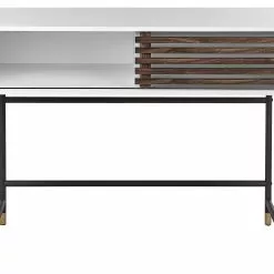 Añade modernidad a tu sala de estar o dormitorio con esta consola. Está fabricada a partir de tablero de fibra resistente y de bajo mantenimiento. Los 2 compartimentos ofrecen el suficiente espacio de almacenaje para guardar libros, decoraciones u otros accesorios. Las patas de metal resistente refuerzan el estilo contemporáneo del diseño.