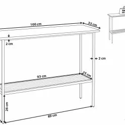 Añade un aire escandinavo a tu recibidor con esta consola. Está fabricada a partir de MDF resistente y duradero. Las patas de metal en contraste garantizan la máxima estabilidad. Puedes utilizar el estante adicional para guardar bolsos o zapatos. Ideal para tener a mano las llaves de la puerta de casa u otros accesorios.