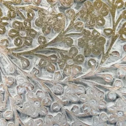 Añade funcionalidad a tu sala de estar o dormitorio con esta mesa auxiliar. Está fabricada a mano a partir de madera de mango resistente. El patrón floral en el tabero y el calado en la base aportan un aire de distinción al diseño. Combina el estilo retro y el oriental a la perfección.
