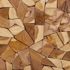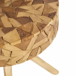 Agrega un encanto rústico a tu sala de estar o dormitorio con esta mesa auxiliar. Su parte superior gruesa y redonda está hecha de tablas de teca que juntas crean un diseño inusual. La base se compone de cuatro troncos delgados que completan el aspecto natural del mueble. Úsalo como una mesa auxiliar o una mesa de noche y acentúa la decoración de tu hogar.