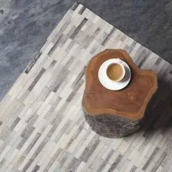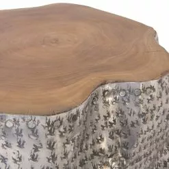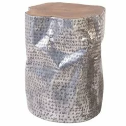 Añade un toque industrial a tu sala de estar o dormitorio con esta mesa auxiliar. Está fabricada a partir de madera de teca de alta calidad y revestida de aluminio. Puedes utilizarla como mesa de centro, taburete o accesorio decorativo.