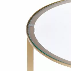 Añade elegancia a tu sala de estar con esta mesa auxiliar. Está fabricada a partir de vidrio templado resistente y duradero. La estructura de metal combina bien en cualquier interior de estilo moderno o glamuroso. Puedes utilizar el estante de madera oscura para guardar libros o revistas.