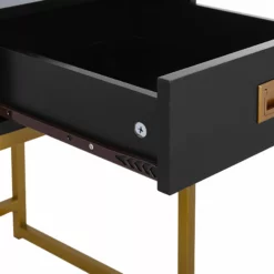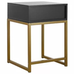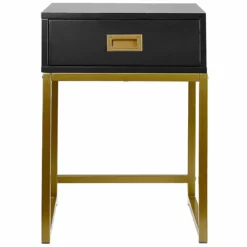 Esta mesa auxiliar encaja a la perfección en cualquier sala de estar de estilo moderno, glamuroso o escandinavo. Está fabricada a partir de MDF resistente y de bajo mantenimiento. La forma sencilla y el acabado clásico combinan bien con la base de metal. También puedes utilizarla como mesa de noche.