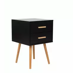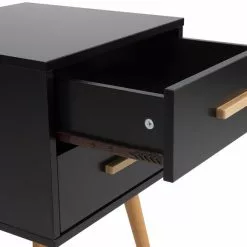 Añade un toque minimalista a tu interior con esta mesa auxiliar. Está fabricada a partir de MDF de alta calidad. Los 2 cajones ofrecen el suficiente espacio de almacenaje para guardar las pertenencias y tenerlo todo a mano. Los tiradores de bambú natural aportan un aire natural al diseño. Las patas de madera de caucho ofrecen la máxima estabilidad. Puedes utilizarla como cómoda en la sala de estar o como mesa de centro en el recibidor.