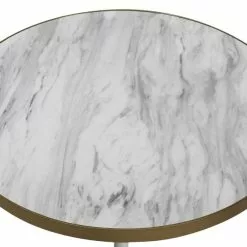 Esta mesa de centro es una elegante pieza central que aportará estilo retro a cualquier interior. La parte superior de la mesa está elaborada de MDF duradero y combina perfectamente con sus tres patas de metal con elementos dorados. Su estilo atemporal agrega un toque elegante a diferentes tipos de interior, desde la decoración minimalista hasta glamour.