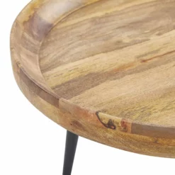 Añade un aire de distinción a tu sala de estar con esta mesa de centro. Está fabricada a partir de madera de mango de alta calidad. El patrón de nudos en el tablero llama la atención de los invitados. Los bordes elevados garantizan que ningún objeto caiga de la mesa.