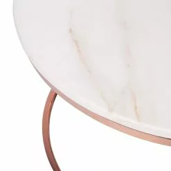 Añade a tu interior esta mesa de centro de diseño glamuroso. El tablero de MDF es duradero y de fácil mantenimiento. Incluye un acabado en mármol que aporta un toque de exclusividad. La base de metal aporta una cierta tonalidad de brillo.