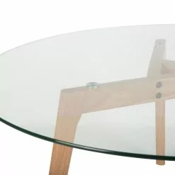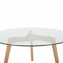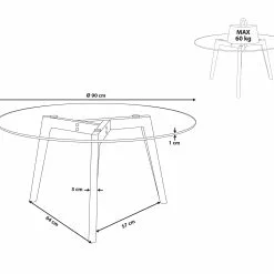 Elegante diseño y trabajo manual de primera calidad, estas son las características principales de nuestra mesa. Sus 45,5 cm de altura no sirven solo como para colocar objetos, sino también como elemento decorativo de interior. Una mesa auxiliar es mucho más importante de lo que usted piensa, ya que añade un estilo especial a la casa. Tres patas de madera hacen de soporte de su superficie de vidrio de 5mm de grosor y 90 cm de diámetro. Esta mesa es incuestionable en cuanto a diseño y calidad.
