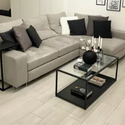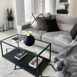 Decora tu interior con esta mesa de centro minimalista pero elegante. Con el tablero hecho de vidrio templado y un marco de metal, esta pieza es muy duradera y resistente. Colócala en una sala de estar o en una oficina para agregar un toque decorativo maravilloso, que al mismo tiempo sigue siendo funcional.