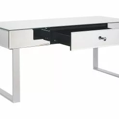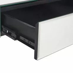 Añade glamour a la decoración de tu sala de estar con esta mesa de centro. Está fabricada a partir de MDF resistente y de alta calidad. El acabado espejado del tablero amplía visualmente el interior. El cajón ofrece el suficiente espacio de almacenaje para guardar las pertenencias y tenerlo todo a mano. El pomo de vidrio acrílico llama la atención de los invitados.