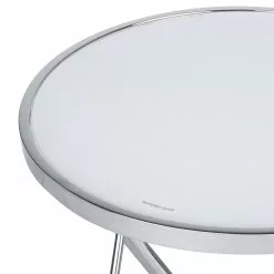 Esta mesa de café trae un diseño art deco y un toque de medieval a tu sala de estar. La mesa redonda presenta patas de horquilla plateadas y un tablero de vidrio templado blanco que le da al diseño un aspecto opulento y elegante. Esta mesa atemporal complementará una variedad de estilos de decoración del hogar, desde retro hasta moderno y glamoroso.