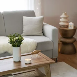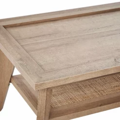 Añade modernidad a tu sala de estar con esta mesa de centro. Está fabricada a partir de tablero de fibra resistente y de bajo mantenimiento. El estante de ratán situado en la parte superior ofrece el suficiente espacio de almacenaje para guardar los distintos accesorios.