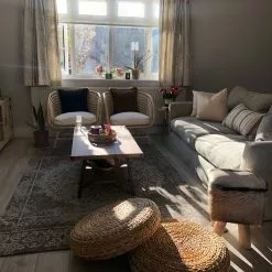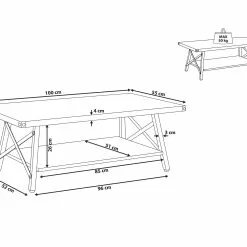 Añade elegancia a tu sala de estar con esta mesa de centro. Está fabricada a partir de MDF de alta calidad. Las patas de metal y el acabado en imitación madera aportan un aire industrial al diseño. La balda inferior ofrece el suficiente espacio de almacenaje para guardar distintas pertenencias.