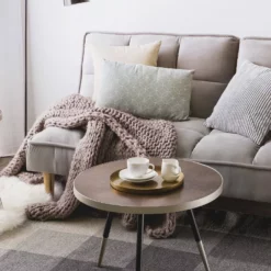 Esta mesa de centro es una elegante pieza central que aportará estilo retro a cualquier interior. La parte superior de la mesa está elaborada de MDF duradero y combina perfectamente con sus tres patas de metal con elementos plateados. Su estilo atemporal agrega un toque elegante a diferentes tipos de interior, desde la decoración minimalista hasta glamour.