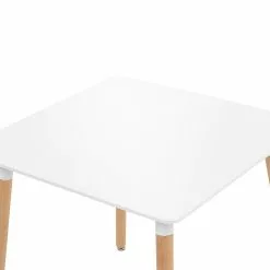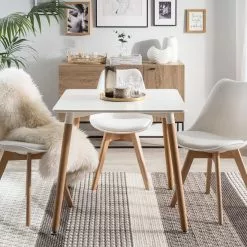 Añade un toque escandinavo a tu interior con esta mesa de comedor. Está fabricada a partir de MDF de alta calidad y bajo mantenimiento. El acabado mate del tablero proporciona un aire de distinción al diseño. Las patas de madera maciza garantizan la máxima estabilidad.