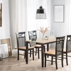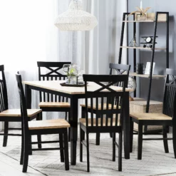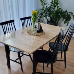 El diseño simple con líneas limpias y una apariencia fresca y natural caracterizan el estilo rústico de esta mesa. La parte superior de la mesa en color de madera natural combina perfectamente con patas de mesa lacadas de negro. Esta mesa encantadora se puede utilizar de muchas maneras diferentes en los comedores, cocinas y salas de estudio luminosas.