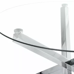 Añade funcionalidad a tu interior con esta mesa de comedor. Está fabricada a partir de metal resistente y de alta calidad. El tablero está hecho de vidrio transparente de bajo mantenimiento. Las patas en forma de cruz aportan la máxima estabilidad. Los protectores evitan que se dañe el piso.
