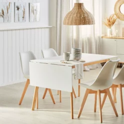 La mesa de comedor es una pieza moderna que combina funcionalidad y estilo. La madera se realza por una superficie blanca que asegura un aspecto atemporal. Cuenta con una dimensión de 120x80x75 cm y superficie en MDF lacado fácil de limpiar. La placa de extensión se encuentra en uno de sus laterales, que permitir extender a 155 cm siendo una ventaja definitiva. la mesa combinará perfectamente con cualquier cocina, comedor o taller.