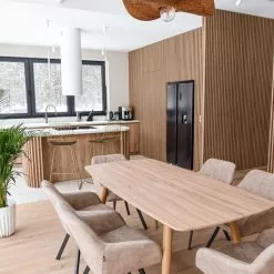 Añade un toque escandinavo a tu interior con esta mesa de comedor. Está fabricada a partir de MDF resistente y duradero. El tablero extensible ofrece cabida a una gran cantidad de invitados. Gracias a su tamaño, combina bien en cualquier comedor de dimensiones reducidas.