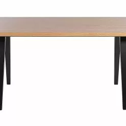 Esta mesa de comedor es ideal para cenar, organizar una fiesta con amigos o una comida familiar. El tablero de MDF enchapado en roble aporta un toque rústico al diseño. Las patas de madera de caucho ligeramente inclinadas combinan bien en cualquier interior de estilo minimalista, escandinavo y rústico. Encaja bien con un juego de sillas de madera o de metal.