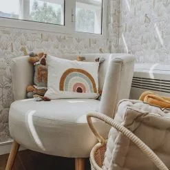 A帽ade modernidad a tu sala de estar con este sill贸n decorativo. Est谩 fabricado a partir de tela de poli茅ster de alta calidad y suave al tacto. El asiento de acolchado grueso, el respaldo bajo y la forma semicircular ofrecen la m谩xima comodidad. Combina bien en cualquier interior de estilo moderno, vintage o escandinavo.