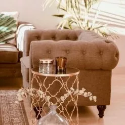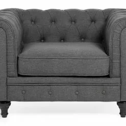 A帽ade a la decoraci贸n de tu sala de estar u oficina en casa este sill贸n de estilo Chesterfield. Est谩 fabricado a partir de tela de poli茅ster de alta calidad y suave al tacto. Los cojines de espuma garantizan el mejor descanso. El dise帽o atemporal, el dise帽o capiton茅 y los reposabrazos elegantes llaman poderosamente la atenci贸n.