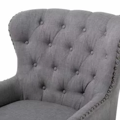 Añade comodidad a tu sala de estar con este sillón. Está fabricado a partir de tela de poliéster de alta calidad. Los reposabrazos de estilo moderno y el respaldo decorado con botones aportan un toque de elegancia al diseño. La estructura de madera de pino y las patas de madera de abedul garantizan estabilidad. Combina bien en cualquier interior tradicional o contemporáneo.